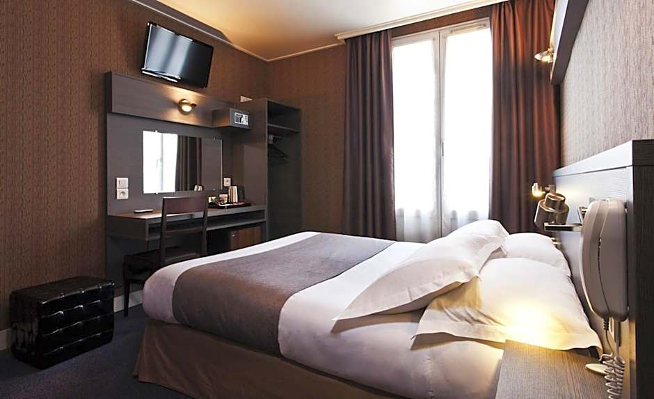 The stylish rooms include a flat-screen TV with international and Canal+ channels, a telephone and a mini-bar. A safe and an electric kettle are also provided and the private bathroom is complete with a bath or shower.