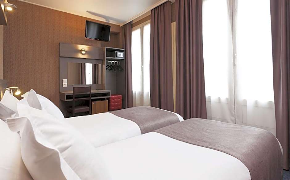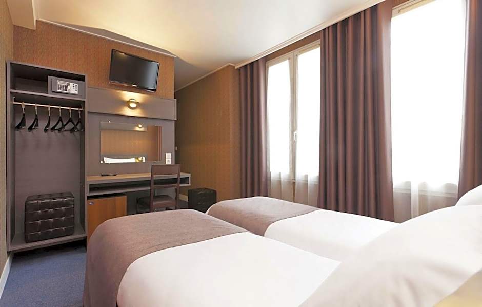 The stylish rooms include a flat-screen TV with international and Canal+ channels, a telephone and a mini-bar. A safe and an electric kettle are also provided and the private bathroom is complete with a bath or shower.